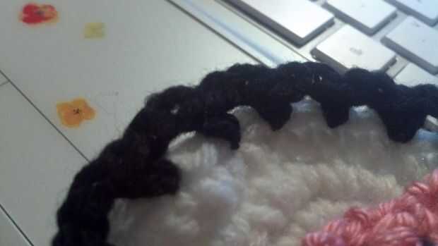 En negro ch 2 en el borde de la placa, saltar 2 stch y sc repetir todo la placa st y lazo apagado.