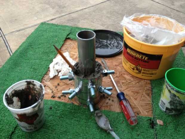 - Mezclar el concreto (mezcla de más de lo que usted piensa que necesitan. Elegí una mezcla más seca para aumentar mis posibilidades de tener el hormigón más fuerte después de curar. Fue la consistencia de la mantequilla de maní).