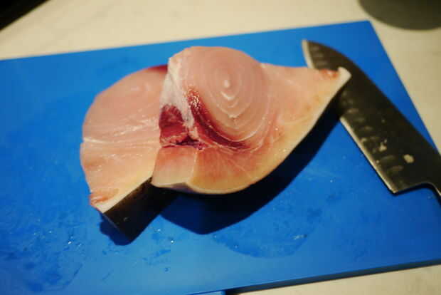 • Recorte cualquier piel o huesos de pescado y cortar en cubos de 1 pulgada.