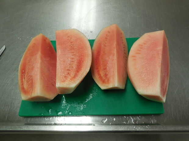 En los países asiáticos, mordeduras de bocado de sandía son una comida muy agradable en la calle. Allí, creo que usan polvo de chat y pesto de menta. Oigo que la sandía va muy bien con queso Feta queso tan pensado incluso junto con el pesto de perifo