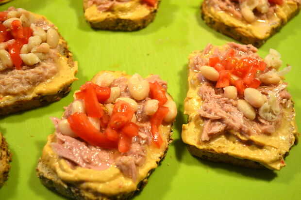 4. para agregar un hermoso color y frescura para el sándwich, añadir unos trocitos de tomate como la siguiente capa. Asegúrese de agregar sólo el de tomate "carne", no semillas, no jugo como harían su sandwich empapado y no queremos eso.