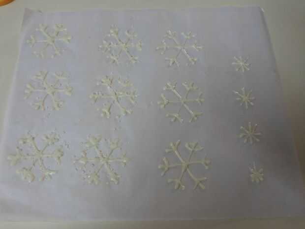 Espolvoree azúcar blanca granulada sobre el copo de nieve. (me olvidé de hacer este paso para todos los copos de nieve...: P)