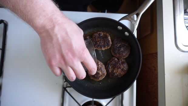 Ahora tenemos que comprobar nuestra salchicha de desayuno. Es importante mantener un ojo en él porque puede ir para arriba en llamas real rápidas.