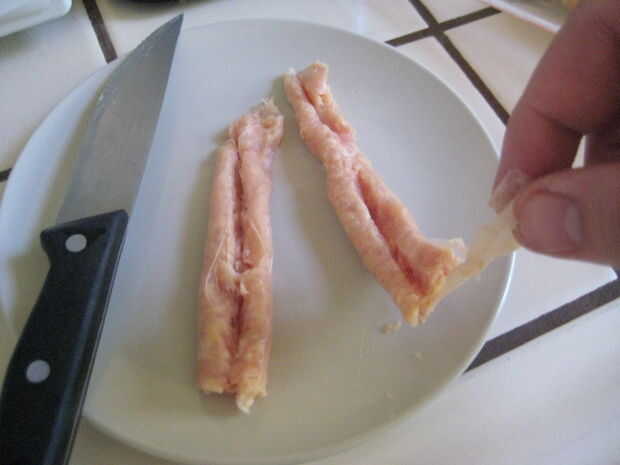 3. corte acoplamientos de la salchicha abierta y retire la piel.