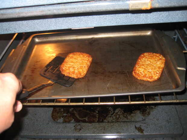 5. tapa el hash brown(s) en el horno tan pronto como termine la carne. (10 minutos de tiempo de horno).