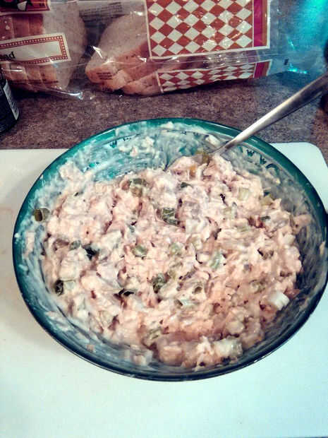 En un tazón grande, mezcle sobre artículos picados con el atún, agregar el mayo pasado hasta que tenga la consistencia conveniente. Añadir cualquier especias opcionales disfrutan, nos gusta pimentón, eneldo fresco o simplemente pimienta viejo.