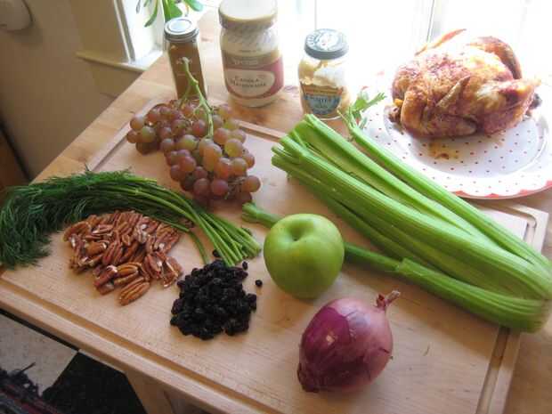 ensalada de pollo fácil, delicioso con un toque únicoPaso 1: ingredientesUsted necesitará lo siguiente:1 c cocina Jerezagua de 1 c3 pechugas de pollo1/2 cebolla roja, cortada en cuboscrema de 1/4 cmayonesa de 1/4 ceneldo 1 cucharada secada (fresco es