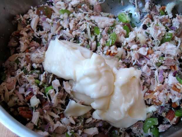A veces incluyo 1 cucharadita de vinagre de sidra de manzana en mi ensalada de pollo cuando quiero agregar una nota más brillante más ácido a la base de sabrosos dulce que proporciona esta receta.
