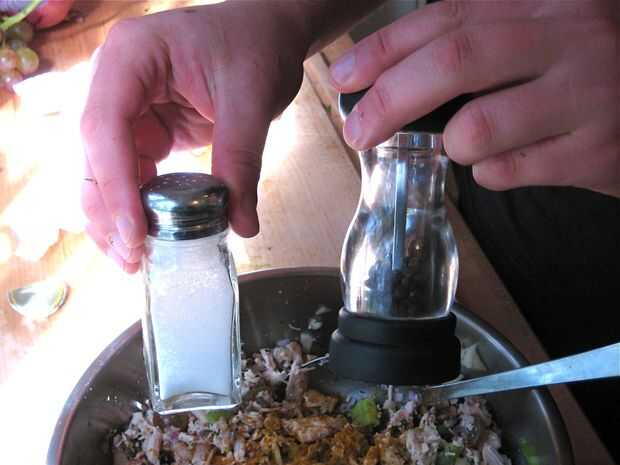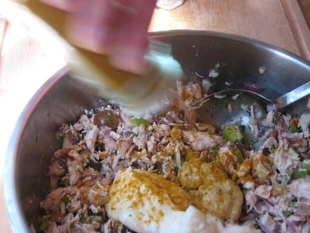 ensalada de pollo fácil, delicioso con un toque únicoPaso 1: ingredientesUsted necesitará lo siguiente:1 c cocina Jerezagua de 1 c3 pechugas de pollo1/2 cebolla roja, cortada en cuboscrema de 1/4 cmayonesa de 1/4 ceneldo 1 cucharada secada (fresco es