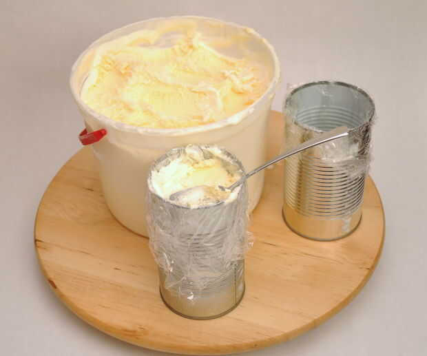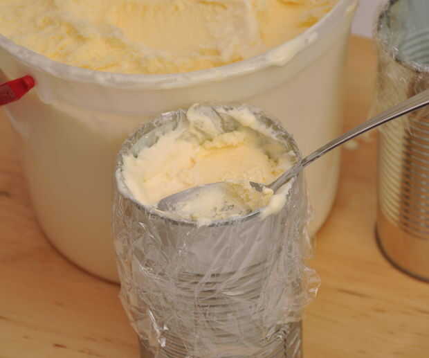 Llene su puede con helado! Puede que necesite dejar hacia fuera un poco para ablandar. No te olvides que perderan si lo haces, yo casi lo hice: P