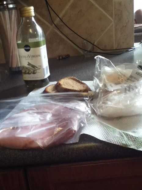 Se necesita: 2 trozos de pan, 3 pedazos de jamón, 2 pedazos de queso, salmueras de eneldo *, mayonesa / mostaza *, aceite * la estrella significa que este ingrediente es opcional
