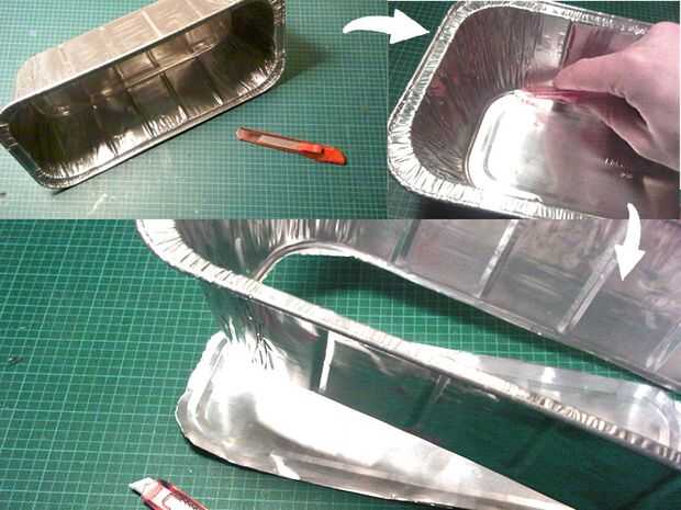 Comience usando un cuchillo agudo de la manía para quitar la parte inferior de la bandeja de carga. Tenga cuidado aquí como una vez cortado los bordes queden filosos, use guantes.