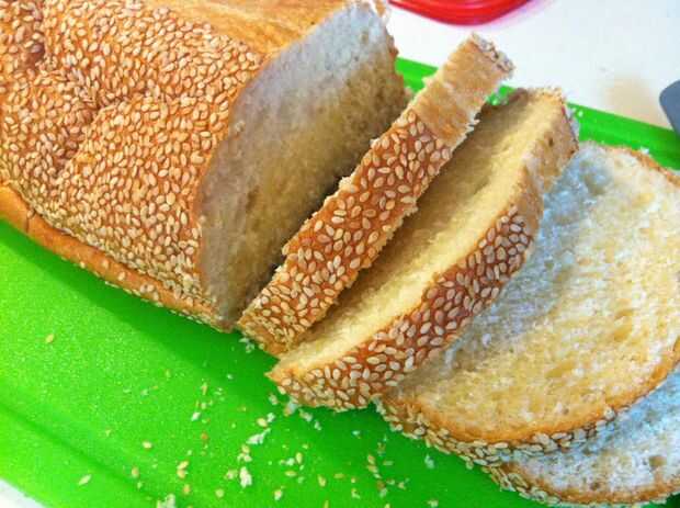 Su favorito super delicioso pan (elegí un pan de sésamo. Es tan bueno! Además estaba a la venta :)