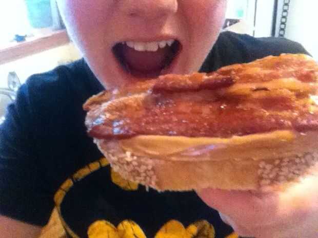 Sandwich de tocino manteca de cacahuete frito! (2 / 3 paso)