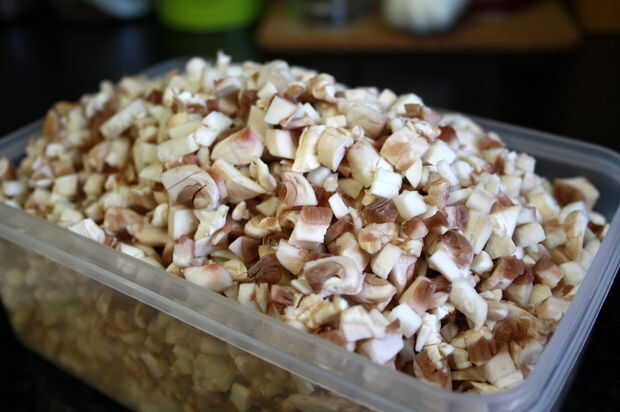 Comenzar con usted necesita para hacer la mezcla de seta - utilicé setas castaño medio y mitad champiñones blanco copa cerrada, sobre 14 medio tamaño setas en total.