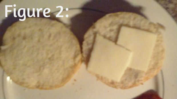 Tomar dos trozos de queso y colocarlos en la parte superior de la galleta abierta (ver figura 2).
