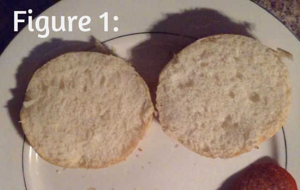 Cuando se hacen las galletas, sacar del horno. No gire el horno apagado, todavía. Cortar cada uno por la mitad y abrirlos (ver figura 1).
