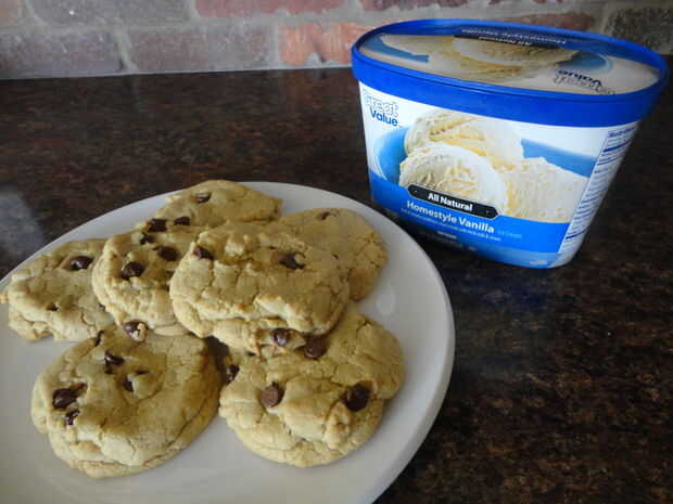 esta es una deliciosa fusión de helado y las galletas! Hecha simplemente por volcando un molde de muffin y hornear galletas sobre ella y luego nieve de helado para hacer un pastel de helado con la cáscara más grande siempre.Materiales necesarios:su h