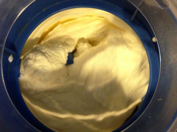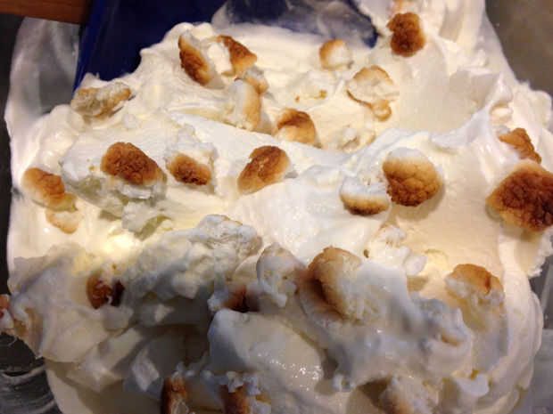 Mezclar los malvaviscos asados en el helado espesado. (Si ellos están pegadas como míos, separarlos con un cuchillo antes de mezclar.)