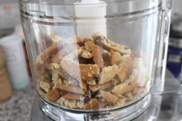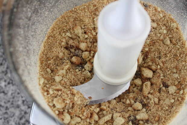 • Poner los pedacitos de galleta sobrante en la licuadora y mezclar a migajas gruesas.
