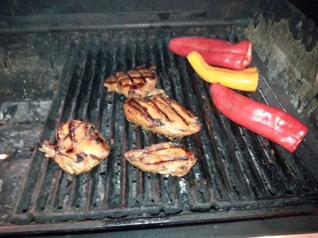 Con un asador precalentado limpio, frotar aceite temperatura en él con una toalla de papel y agregarte temperatura pollo a la parrilla en 45 * ángulo a los rieles a la parrilla. 3-4 min más tarde, si el pollo sale la plancha sin pegarse, gire los 90 * para eran ellos antes de dejar un bonito patrón de rayado en ellos. 3-4 min más tarde voltearlas y hacer el mismo proceso.