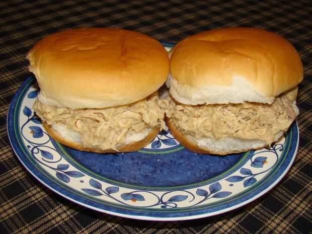 Aquí es una receta muy fácil y rápida para sándwiches de pollo desmenuzado. Estos sándwiches son muy populares en esta área (Ohio). Usted encontrará que sirve en todo tipo de reuniones, de los partidos para convivios y se venden en la mayoría de tiendas de helados local.