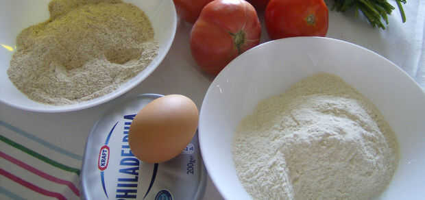 Combina la harina y pan rallado.