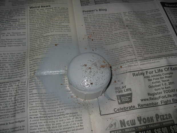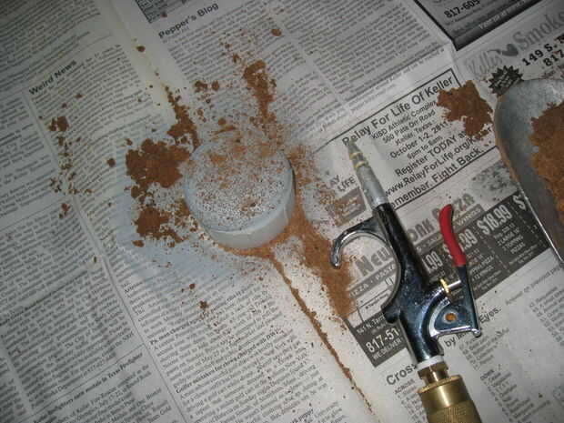 Rocíe una capa, hasta que esté casi líquida. Entonces, salpique arena (trabajo de acuario arena, creo que todos ellos arena, arena, patio lavado). Bastante cubra toda la superficie. Pero eso es demasiada arena para trabajar muy bien. Me gustaria tener cerca de 50% la cobertura de la arena.