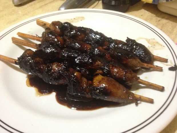 Oh, y por ser las entrañas, es super barato. No pasar más de cinco buck en esta receta, teniendo en cuenta que compré la salsa de soja, la miel y los corazones. El resto tenía, pero la suma de tres ingredientes principales por menos de $5 y sirve cuatro (un pincho cada).