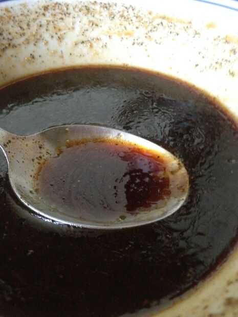 Mezclar los líquidos. Utiliza una barba para romper la miel, toma algún trabajo de muñeca. Rocía unas gotas de aceite: con el vinagre, esto creará la emulsión. Puede sazonar adobo con pimienta negra, comino, pimentón, pero sólo si te apetece. Apenas he empezado a cocinar con comino y pimentón después de mi primer intento de chili con carne (que es no un platillo mexicano, independientemente de los españoles en el nombre). Así que, estoy cavando al combo de comino/de la paprika, y va bien con esto, aunque apuesto a que hay otros condimentos que hay en la naturaleza. Explorar, experimentar, disfrutar...