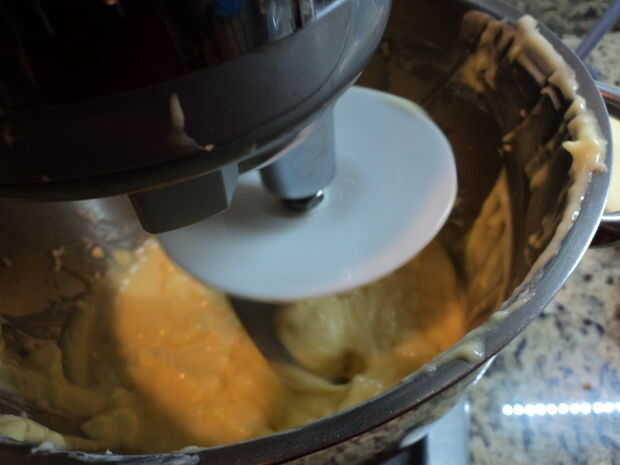 Precalienta el horno a 350 grados, mientras que mezclar los ingredientes para su pastel.  No mezclar en la mermelada aún!
