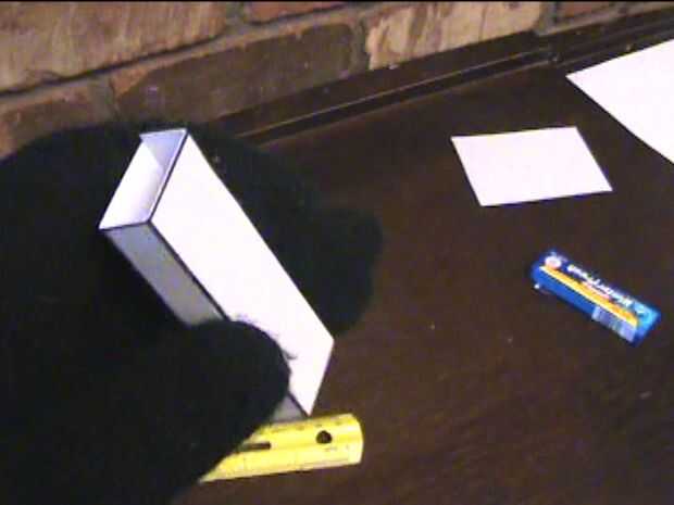 Doble a lo largo de las líneas marcadas para hacer una forma rectangular uso cinta para unir, cortar un cuadrado pequeño que se forma la parte inferior y cinta en. Asegúrese de no dejar ningún espacio abierto.