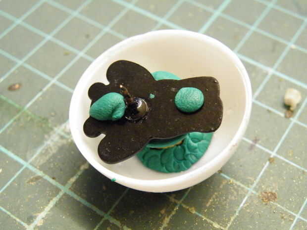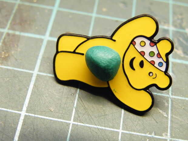 Un pedazo de Sugru fue en vientre de Pudsey y consiguió presiona en su lugar.