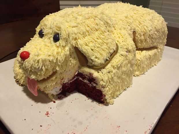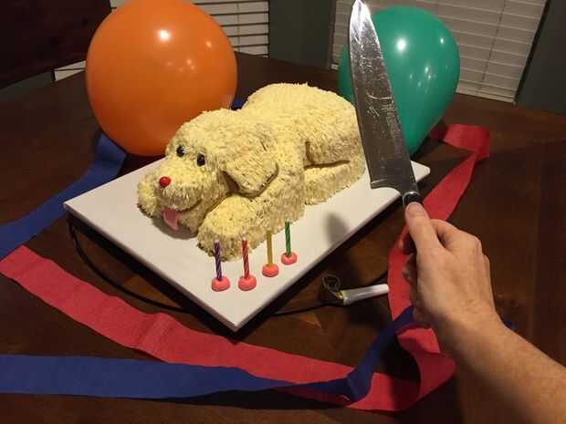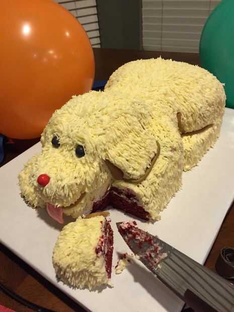 Aquí es donde un triunfo fantástico se convierte en una tragedia griega. Trajo la torta conmigo a parte de los vecinos. He recibido varias Felicitaciones hermoso y un gran abrazo dulce de la cumpleañera. Debo haber dejado en ese momento pero me ofrecí a permanecer y ayudar con la fiesta - error. Cuando llegó el momento de cantar cumpleaños feliz y servir la torta debo haber sido tres Estados lejos y funcionando. Sin embargo, en su lugar me rebanado y había picado ese cachorro trozos sangrantes al horror de todos los niños allí. Usted notará las fotos sólo muestran el primer corte que fue una de la pata. Las cámaras fueron establecidas una vez que los niños empezaron a llorar. Me gustaría que me había dado cuenta de lo que causó la conmoción antes rebajado la cabeza y el otro pata pero me estaba concentrando en las piezas de la galjanoplastia.