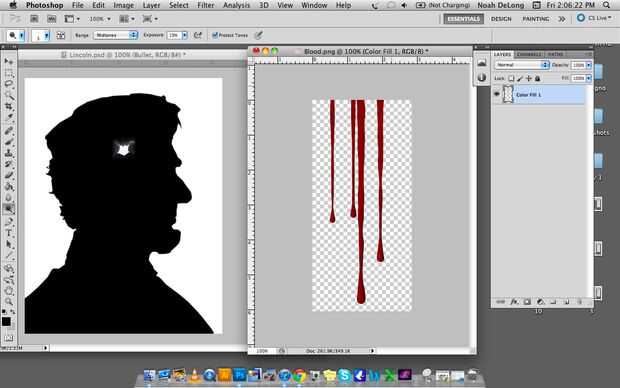 2. deje caer las gotas de sangre en la imagen y colocarlos para que la parte superior quede justo encima del agujero de bala.
