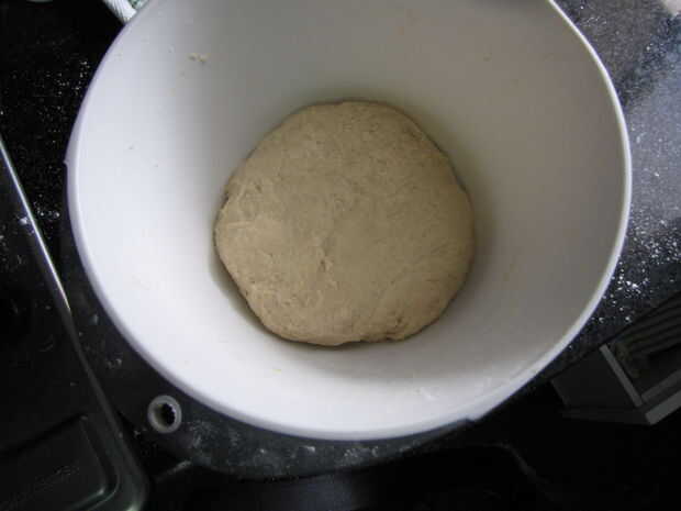 Pero básicamente sólo tienes que mezclar en el bol el azúcar, la levadura de panadero, agua, leche, sal y huevo y se mezcla hasta que se derrita el azúcar. A continuación añadir la harina y mezclar bien añadiendo poco a poco la mantequilla. Después de unos 5-10 minutos de amasado, la mezcla ya no debe pegarse a los dedos (puede agregar más harina Si es necesario para que sea menos pegajosa). En este momento hacer una bola y dejar reposar 30-45 minutos en un lugar tibio, cubierta con un paño como en la imagen.