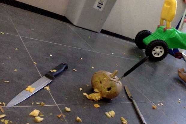 este año (2012) decidí tallar una calabaza por primera vez en mi vida. Quiero usar mi gran máquina CNC (ver) para hacer el corte real. También quería para el diseño de las formas de corte, mediante una aplicación de diseño 3D.Problema: Con calabazas