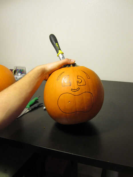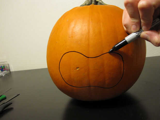 La calabaza Sangranarices empieza como empiezan todas otras aventuras de la talla de calabaza - agarrando un marcador y esbozar un esquema a seguir cuando llegue el momento de cortar el diseño.