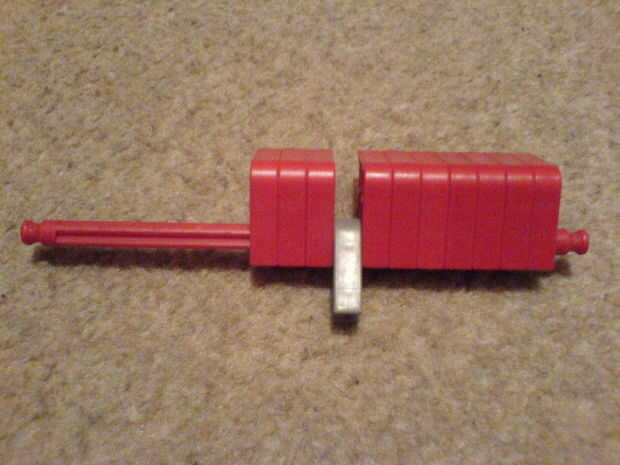 Para el siguiente paso deslizar un conector gris abajo de la barra del rojo y el clip 3 conectores rojo después de él.