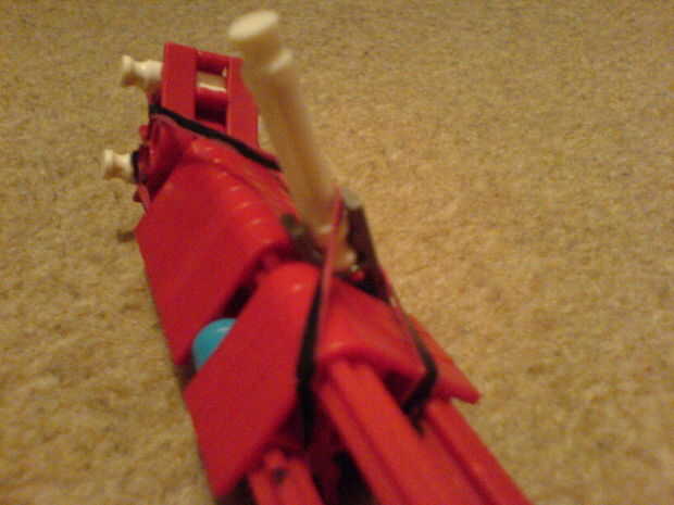 Para disparar el cañón Retire la ram y ranura cualquier barra (en mi opinión los mejores son el amarillo pero el más corto mejor porque van a ir más lejos) en el final de la misma y apretar el gatillo del cañón y hey presto!