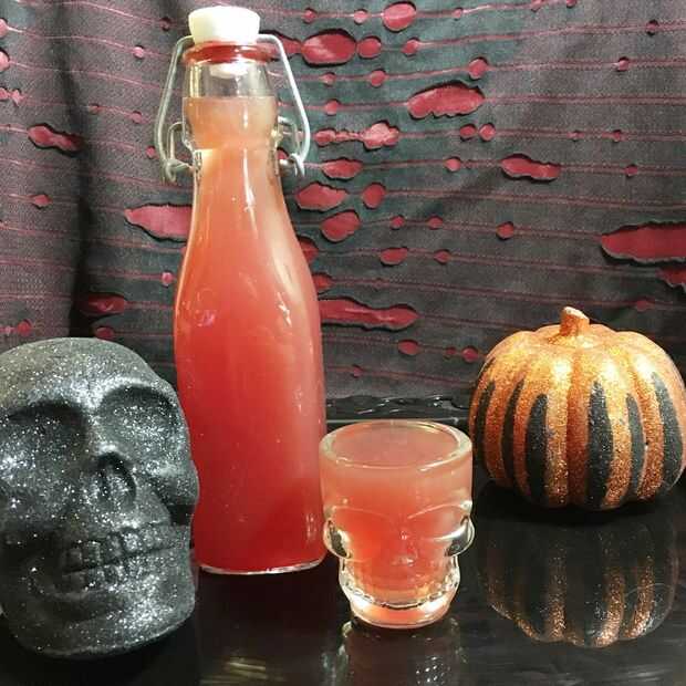 Colar el vodka para quitar la cáscara y luego combinar el vodka y el jarabe simple. Vierta en frascos esterilizados y guardar en el congelador para mejor sabor. Bajo las condiciones adecuadas, el licor podría durar hasta un año en el congelador.