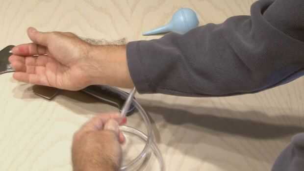 Este efecto funciona mejor con manga larga. Tender el extremo del tubo en su manga y abajo de su camisa o chaqueta. Chupar sangre utilizando el gotero de medicina o baster y fije el extremo abierto del tubo. El efecto hollywood está listo para usar.