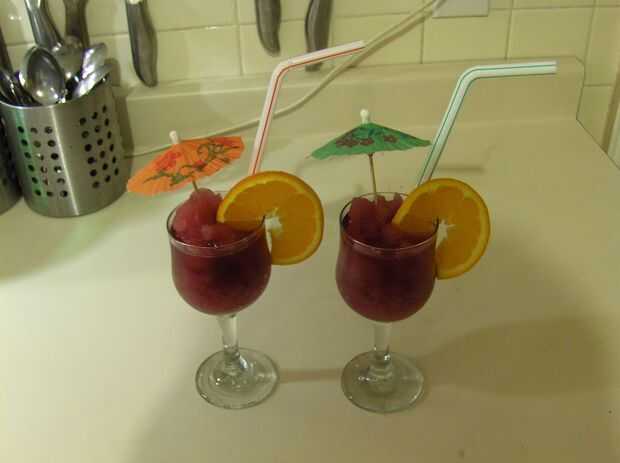 ............................. Por favor disculpen la falta de cuadros para la elaboración de la sangría, el batido más abajo es la verdadera intención de este instructable. Las imágenes arranca desde la etapa de cubo de hielo congelados sangría! ....................................