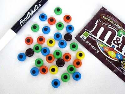 Usando un rotulador comestible negro o colorante negro y un pincel, añadir alumnos a tu "iris" M & M