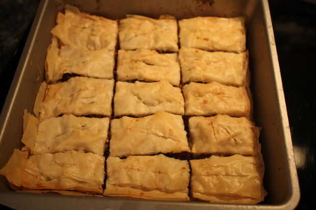 Tu horno debe ser listo para poner su piel en. Hornear durante unos 50 minutos hasta baklava es dorada y crujiente. Ver sobre cada 15 minutos por lo que no se queme el plato.