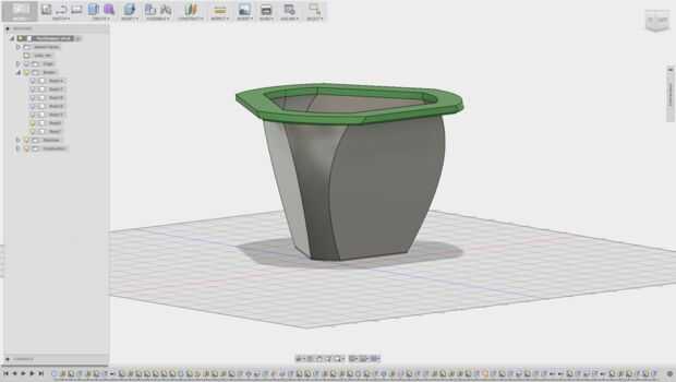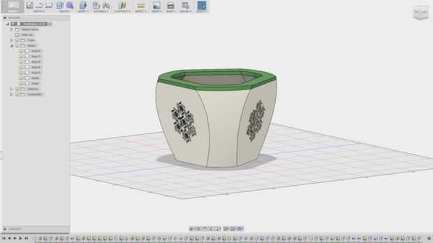 El pote de flor ha sido diseñado en 3 partes: el contenedor interno de la planta, el contenedor decorativo exterior y una parte superior del cierre.