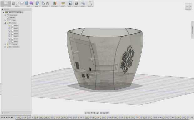 El diseño de la maceta se hizo con Autodesk Fusion360 por mi amigo Sebastien Lagoutte. Los archivos STL son bajo licencia creativa común: Creative común Reconocimiento-NoComercial-CompartirIgual 3.0 Unported (CC BY-NC-SA 3.0).