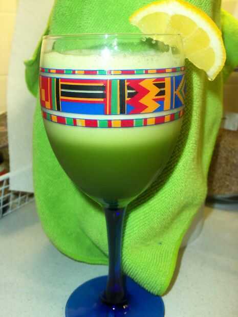 Una vez que son tus verdes todo mezclados muy bien, añadir el jugo concentrado. Puede Agregar tanto o tan poco como usted tiene gusto, esto es sólo para endulzarlo y agregar un sabor agradable. Puede Agregar hielo Si desea helado y como bebida. Vierte en un vaso y disfruta!!!!