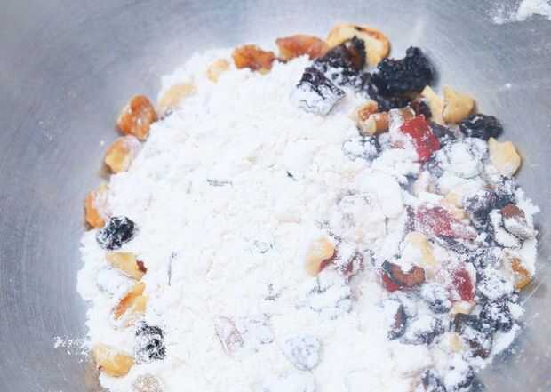 Paso 2: Mezcle frutas y frutos secos con 3 cucharadas de harina