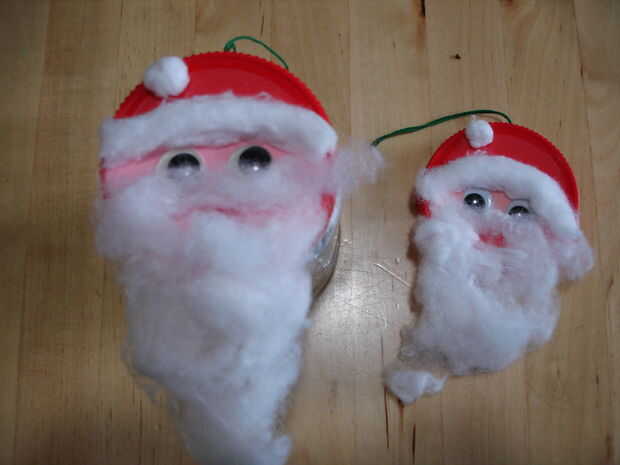 Llené mis contenedores Santa con chocolate, pero estos serían gran relleno con mezcla caliente del cacao, chocolate o fudge. Como un bono, la tapa es un adorno de Santa que se puede colgar en el árbol cuando el tratamiento haya terminado. También se podrían hacer con un tarro de mantequilla de maní grande si querías un envase más grande para galletas u otros dulces.